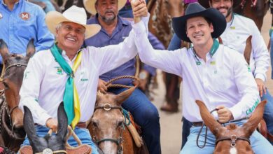 Caiado e Daniel Vilela lideram cavalgada de muladeiros durante o 3º Encontro de Comitivas, em Goiânia